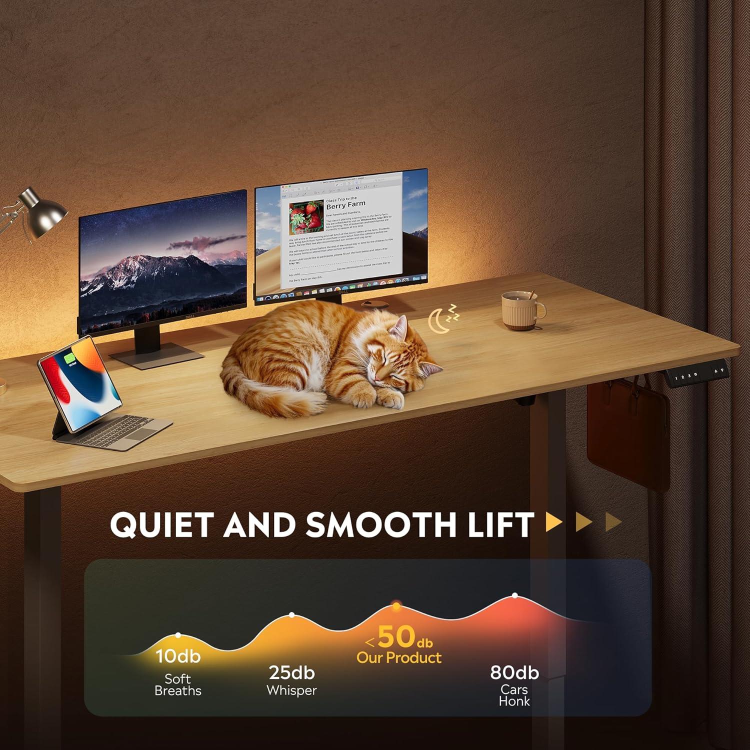 DEVAISE Electric Standing Desk, 63 X 28 Inches Adjustable Height Stand up Desk for Home Office, Large Ergonomic Sit to Stand Desk with Headphone Hook, 3 Memory Preset Computer Desk, Maple