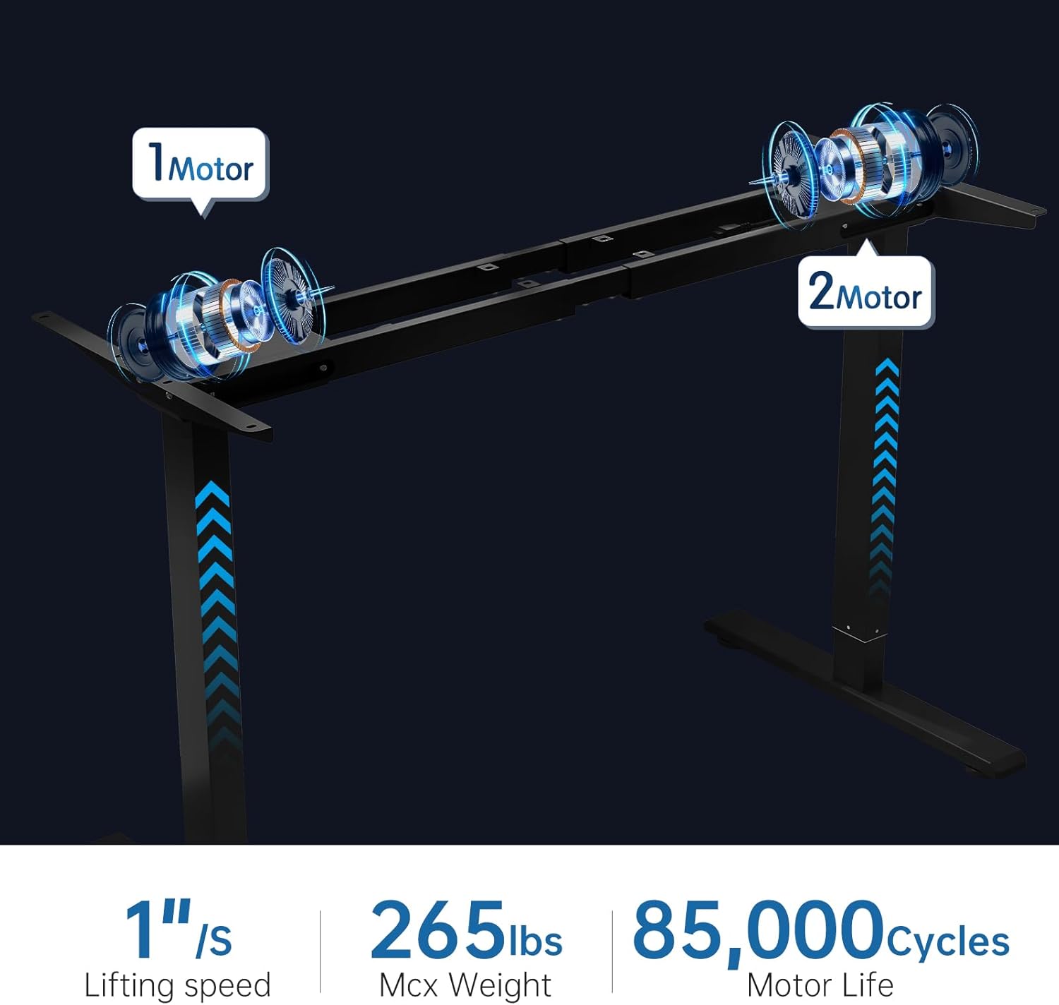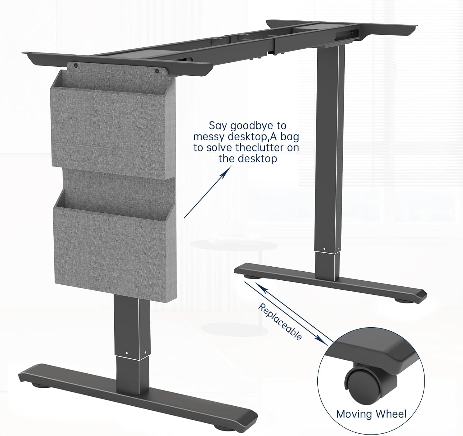 Dual Motor Standing Desk Frame Electric Adjustable Legs, Workstation Standing Desk Legs, with Storage Bag, Headphone Hook, and Caster Wheels