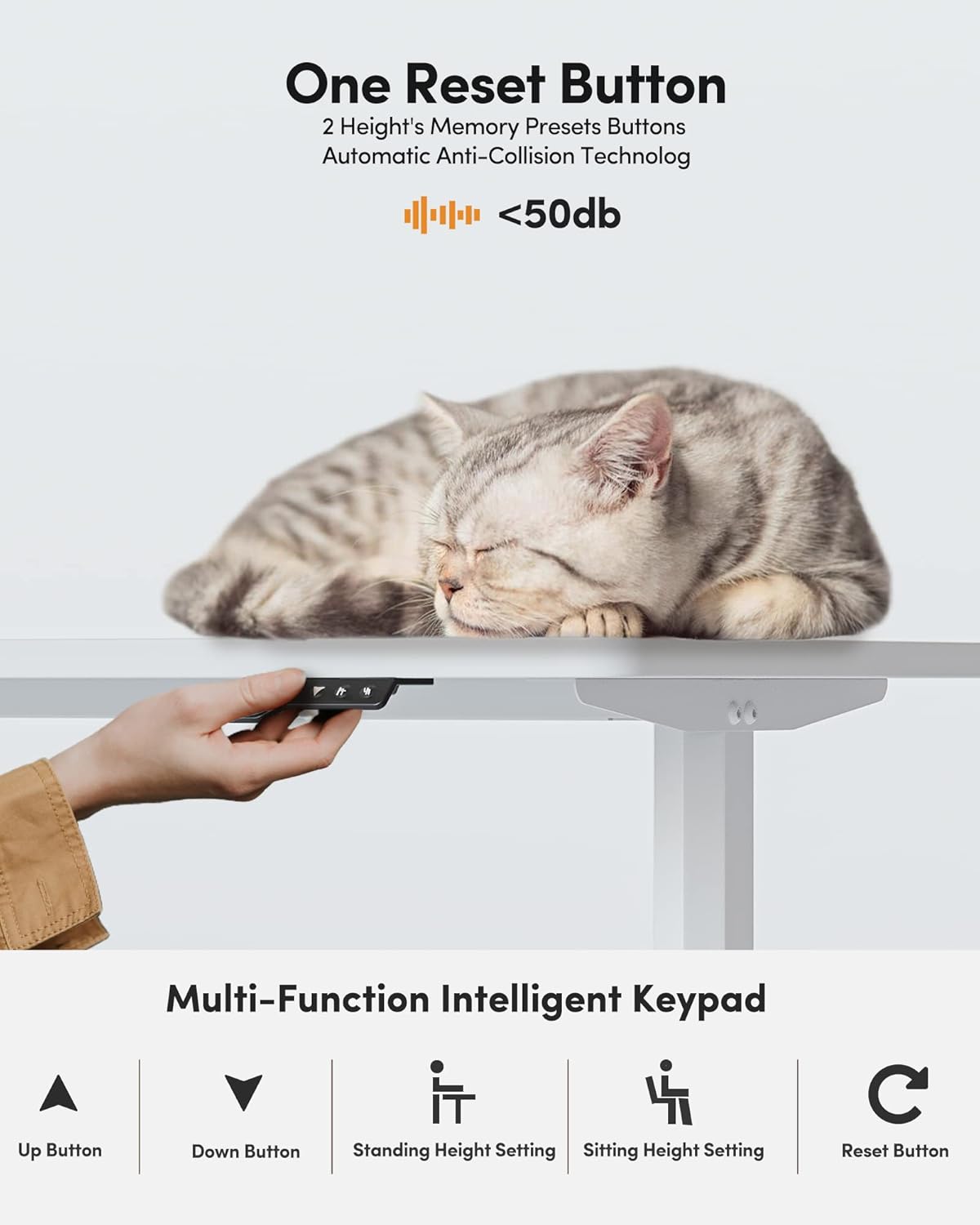 FEZIBO Height Adjustable Electric Standing Desk, 55 x 24 Inches Stand up Table, Sit Stand Home Office Desk with Splice Board, White