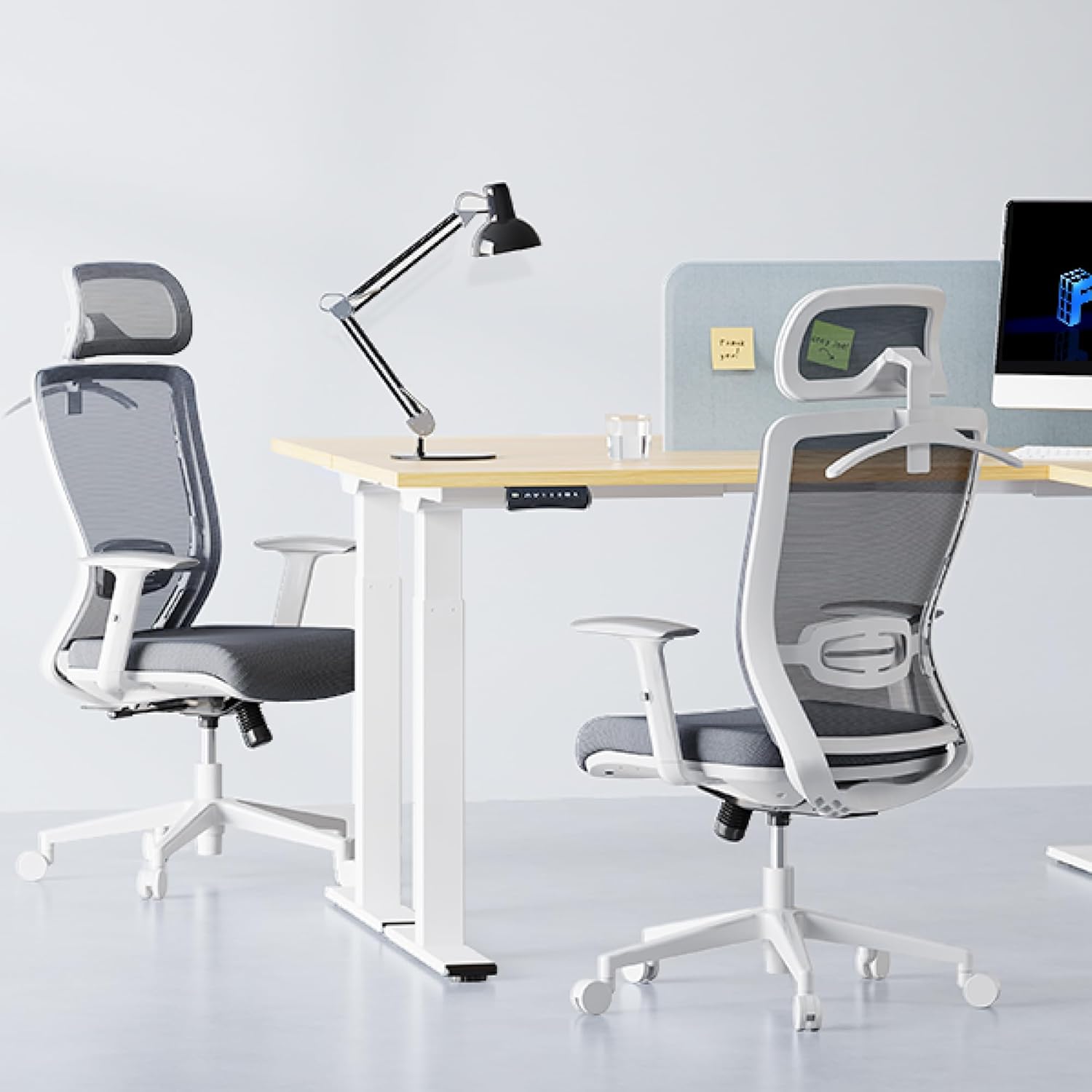 FLEXISPOT Classic Ergonomic Office Chair with High Back Swivel Computer Chair Executive Office Desk Chairs, with Lumbar Support/2D Headrest/Lockable Tilt Function, Foam Seat Cushion, White+Gray