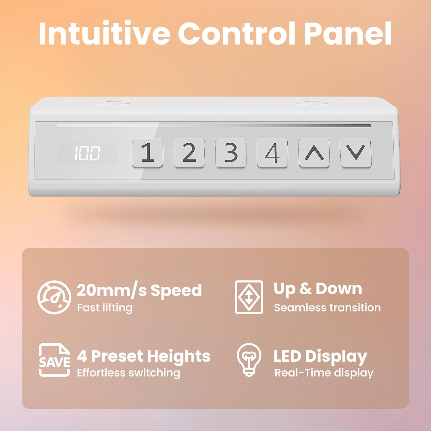 HUANUO 32" Small Electric Standing Desk Adjustable Height, 4 Memory Height Settings, Sit Stand Up Desk for Home Office & Computer Workstation, White and Gold Frame