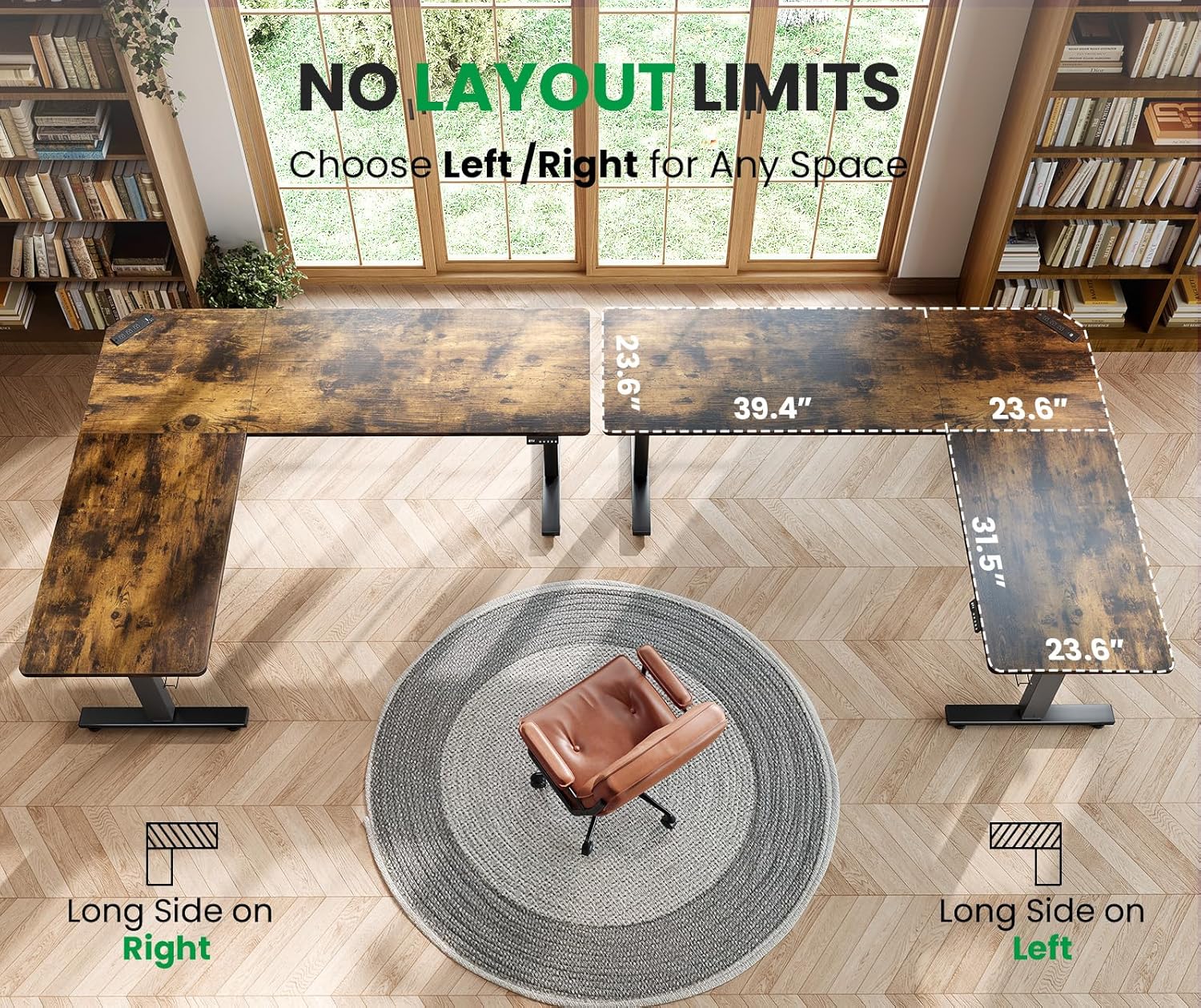 SIAGO L-Shaped Standing Desk - 63 x 55 Inch Adjustable Corner Standing Desk with Charging Station - L Shape Sit Stand Table with Memory Controller, Splice Board for Home Office