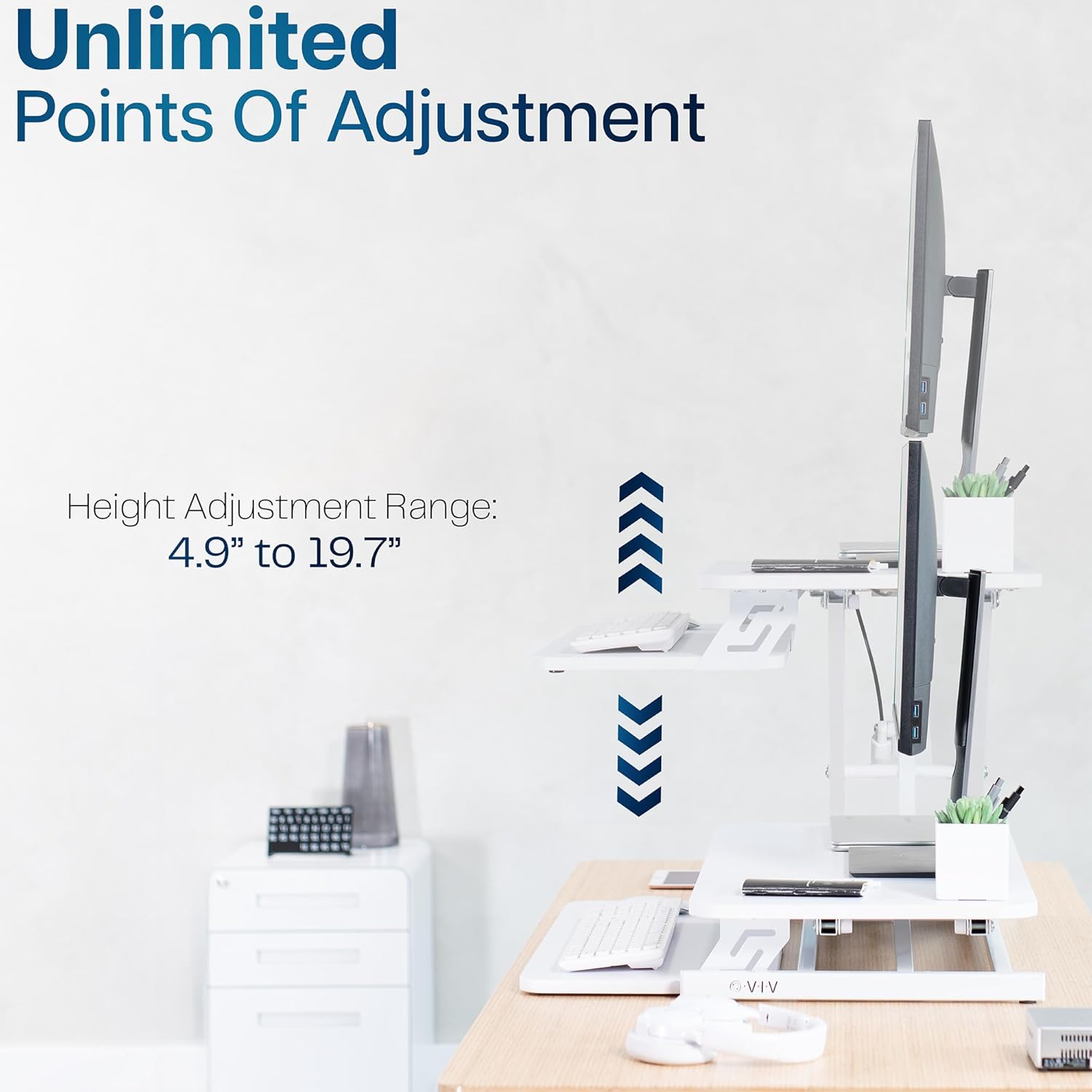VIVO Desk Converter 32 inch Height Adjustable, MDF Wood Sit to Stand Riser, White, DESK-V000SW